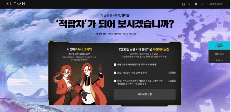 7월 14일부터 7월 27일까지 사전예약 기간입니다. !! 그런데 적합자.. 라니?.. 흐음;;
