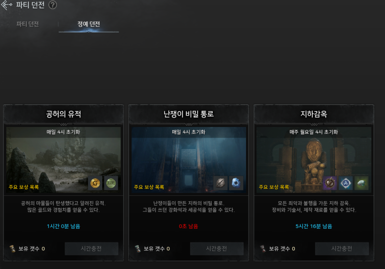 파티던 전과 다르게 시간제로 입장이 가능한 정예던전 또한 다이아 수급처라고 보시면 됩니다. 경험치도 잘 올라요.