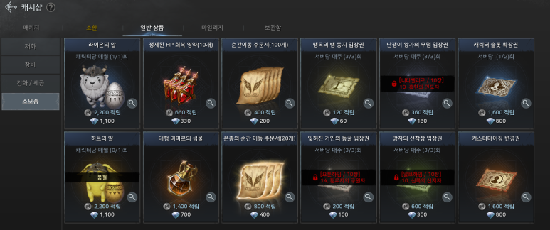 저런 아이템들은 획득하게 되면 판매가 가능하겠죠?