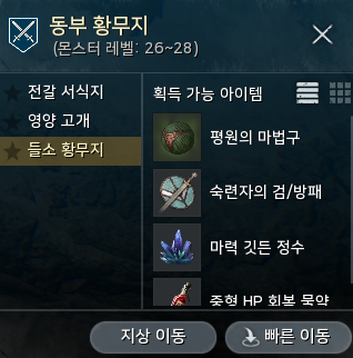 맵에 보시면 지역들 클릭이 가능한데. 본인이 무난하게 사냥할 수 있는 곳에서 어떤 아이템들이 드롭되는지