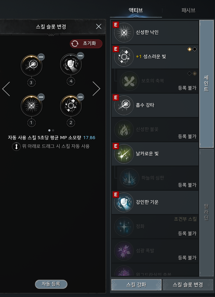 위에 사진을 보시면 자동 사용 스킬 5초당 평균 MP 소모량 보이시죠?