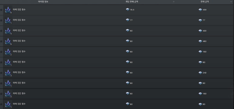 보상 목록을 보시면 거래가 가능한 강화석들, 세공석, 모래시계 가 있습니다.
