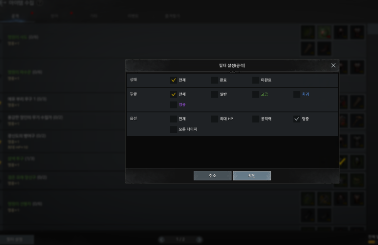 여기서 명중, mp 자연 회복, 공격력 등등 옵션들을 체크하시고
