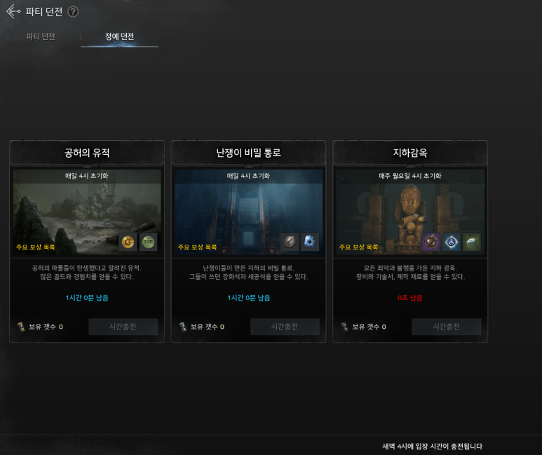 파티던전이고 클리어하시면 보상이 랜덤으로 나옵니다.